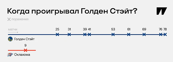 Любопытно, что до сезона «Оклахома» уже напрашивалась на сравнение с «Голден Стэйт» у аналитиков. Команде давали тотал 62,5 по победам – самый высокий в НБА за семь лет. Аналитики именно до регулярного чемпионата в предыдущий раз сильнее оценивали только «Голден Стэйт» в 2018-м. Тогда у «воинов» вместе играли Кевин Дюрант и Стеф Карри – тотал держался на уровне 67,5 побед.