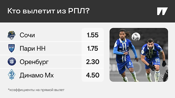 Однако «Пари НН» остается в зоне вылета и котируется одним из двух кандидатов на понижение. Первым идет «Сочи», набравший очки впервые за четыре тура.