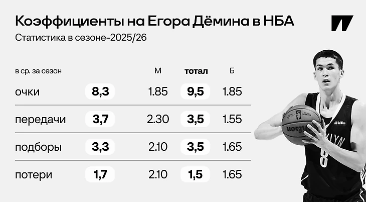 3.40 давали на то, что Дёмин пробьет 20+ очков в одной из игр до конца календарного года – и вот случилась игра с «Филадельфией» в конце ноября.
