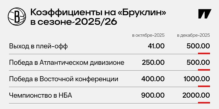 Шансы «Бруклина» в сезоне все хуже, ниже нет ни у кого