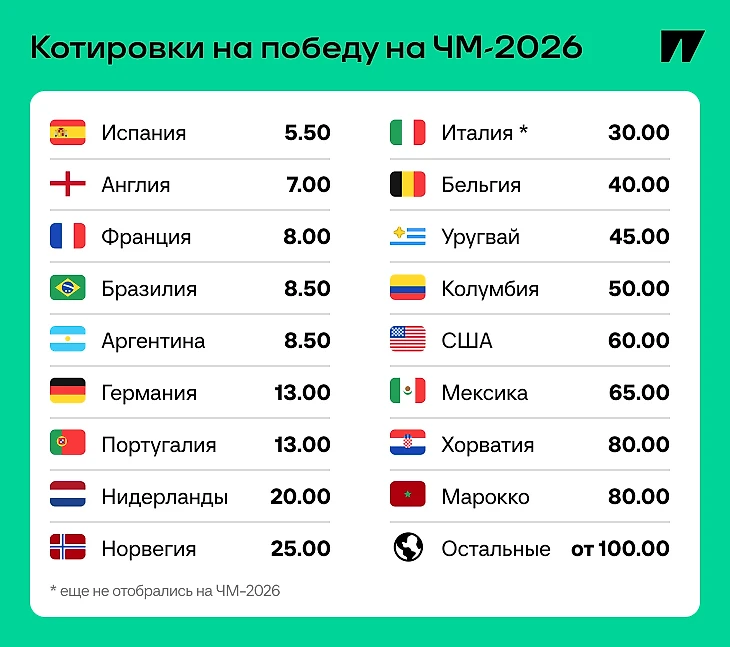 После жеребьевки ЧМ-2026 любопытно оценить, кого букмекеры видят фаворитами каждой группы.