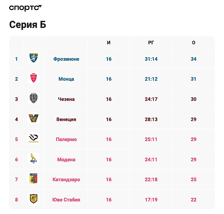 В Серию А больше всех хотят подняться клубы, которые совсем недавно оттуда вылетели: «Фрозиноне» и «Монца» с Кейта Бальде. Правда, экс-нападающий «Спартака» мало помогает: два гола в 13 матчах. Еще в зоне плей-офф идет «Венеция», ставшая предпоследней в прошлом сезоне Серии А.