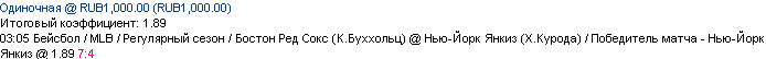 04/04 03:05 Бостон Ред Сокс (К.Буххольц) @ Нью-Йорк Янкиз (Х.Курода) / Победитель матча - Нью-Йорк Янкиз @ 1.89 7:4 ---