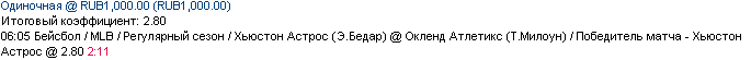 16/04 06:05 Хьюстон Астрос (Э.Бедар) @ Окленд Атлетикс (Т.Милоун) / Победитель матча - Хьюстон Астрос @ 2.80 2:11 ---