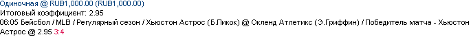17/04 06:05 Хьюстон Астрос (Б.Пикок) @ Окленд Атлетикс (Э.Гриффин) / Победитель матча - Хьюстон Астрос @ 2.95 3:4 ---