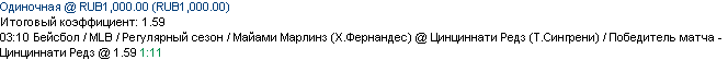 19/04 03:10 Майами Марлинз (Х.Фернандес) @ Цинциннати Редз (Т.Сингрени) / Победитель матча - Цинциннати Редз @ 1.59 1:11 +++
