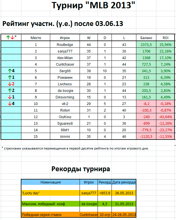 Турнир «MLB 2013» Ставки 4 июня