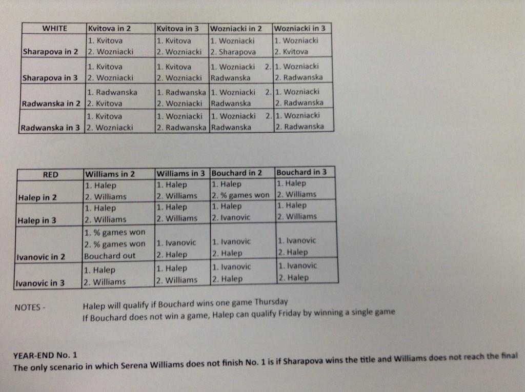 Короче, если Ага и Петра сегодня выиграют в двух сетах, Каро не выйдет из группы. Если Маша и Каро выиграют 2:0, то дальше идет Маша. Поэтому, результат первого матча очень важен. Каро и Ага с детства дружат. Квитовой пофигу. Она выйдет, если выиграет 2:0. Если выиграет 2:1 и Маша тоже выиграет, чешка идет дальше. Поэтому, уверен она выиграет минимум сет. Если Ага выиграет 2:0, она выходит независимо от результата второго матча. Если 2:1, то ей придется молиться, чтобы Петра не выиграла 2:0. Блин.. я запутался. Вот вам полный сценарий. https://pbs.twimg.com/media/B0oANg4CUAAXAcg.jpg:large