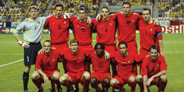 Сборная Бельгии перед матчем с Россией на ЧМ-2002. В нижнем ряду первый слева - Ив Вандерхаге.