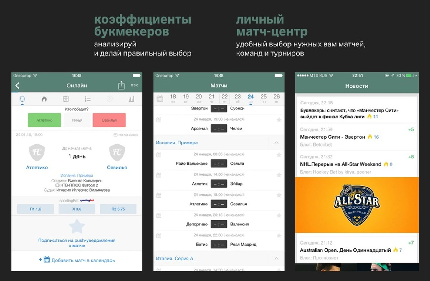 Ставки live от Sports.ru — лучшее приложение второго экрана для любителей ставок. Мы собрали все самое нужное: прогнозы и стратегии успешных игроков на ставках, коэффициенты букмекерских контор, статистику и пуш-уведомления об исходах матчей.