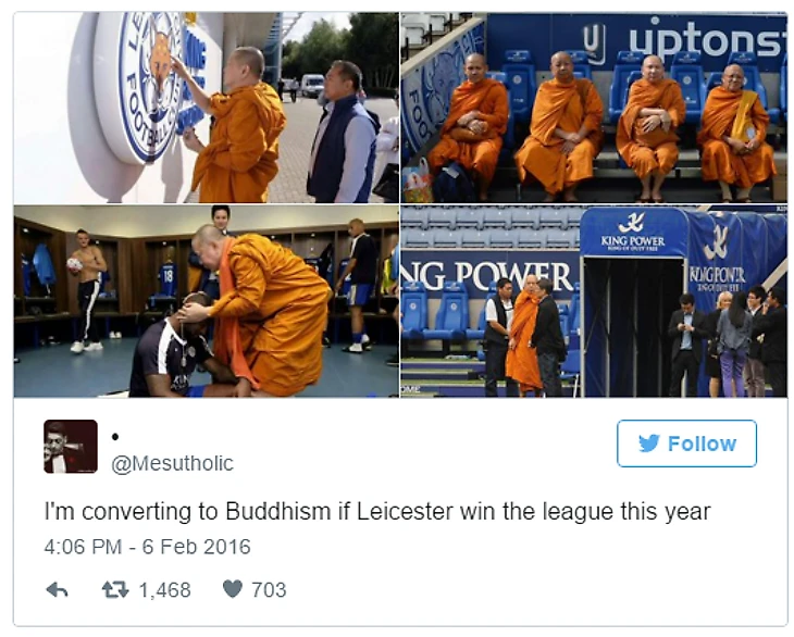«Я приму буддизм, если «Лестер» возьмет титул в этом году»