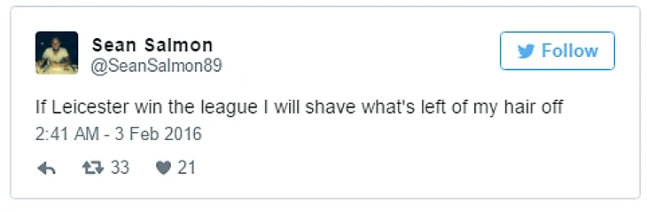 «Если «Лестер» выиграет лигу, я уберу оставшиеся волосы на голове»