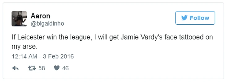 «Если «Лестер» станет чемпионом, я сделаю тату с лицом Джейми Варди на заднице»