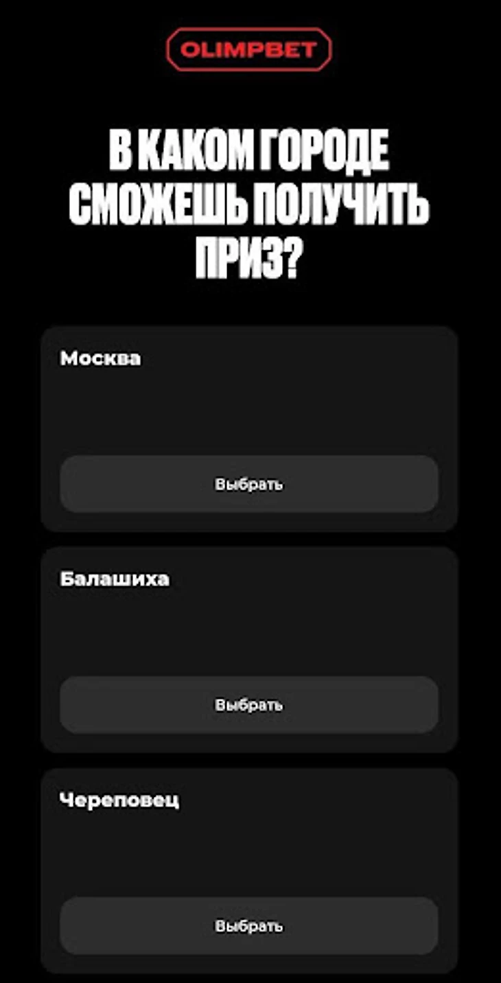 Выбрать город, в котором в случае успеха вы хотите получать призы.
