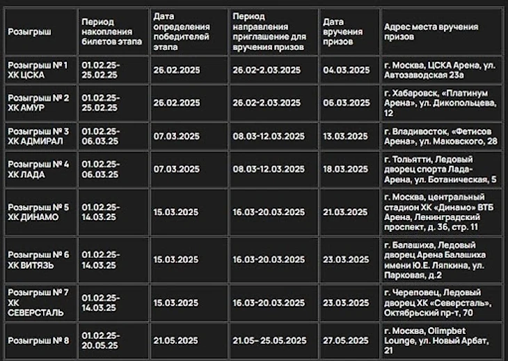 Счастливчиков пригласят на матч КХЛ, где им торжественно вручат заслуженные призы.