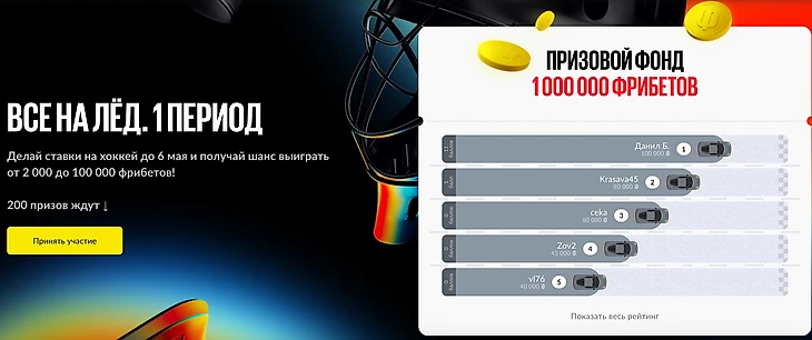 Проще говоря, за активные ставки на хоккейных событиях в указанный период времени можно получить бесплатные ставки (фрибеты), размер которых зависит от успехов участника в рейтинге акции.