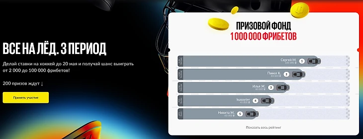 Крупный призовой фонд: 200 фрибетов на общую сумму свыше 1 000 000 рублей.