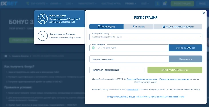 Для получения бонуса новым пользователям 1xBet KZ необходимо:
