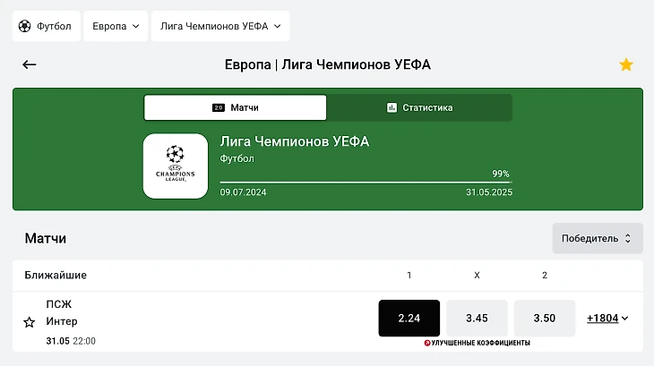 29.05.2025 – 01.06.2025 – финал Лиги чемпионов ПСЖ – «Интер»;