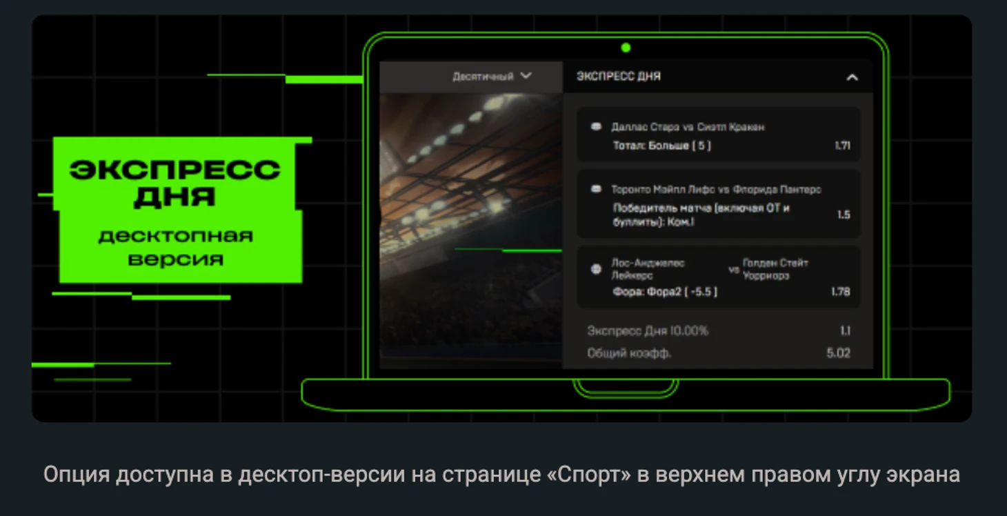 Ограниченный срок действия бонуса: Возможность сделать ставку с бонусом на конкретный «Экспресс дня» доступна только 2 дня после его появления.