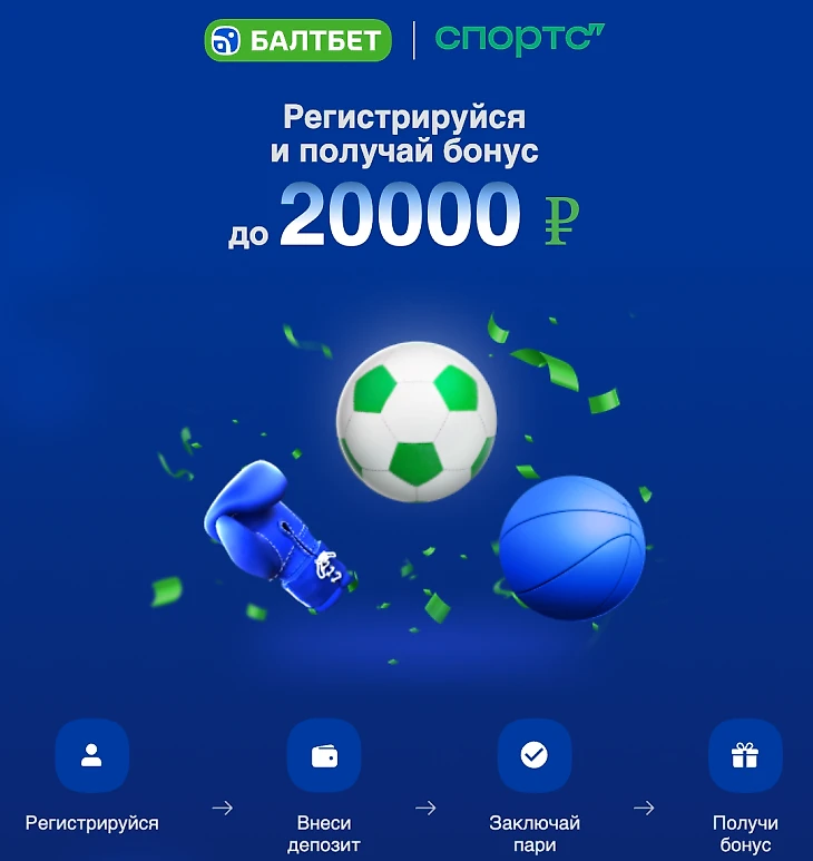 Букмекерская контора «Балтбет» вместе со СПОРТС" предлагает уникальный бонус для новых клиентов, которые только начинают свое знакомство с миром ставок. Для каждого нового игрока, прошедшего регистрацию и внесшего депозит предусмотрен щедрый приветственный бонус — до 20 000 рублей в виде бонусных баллов. Это отличная возможность для тех, кто желает увеличить стартовый игровой баланс и получить шанс на более крупные выигрыши с самого начала.