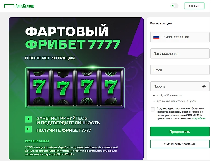 Приветственный бонус можно получить только если вы ранее не были клиентом БК. Есть возрастное ограничение для новых пользователей. На момент регистрации игроку должно быть не менее 18 лет. После совершеннолетия клиенты могут зарегистрироваться в БК, для этого потребуется заполнить анкету: