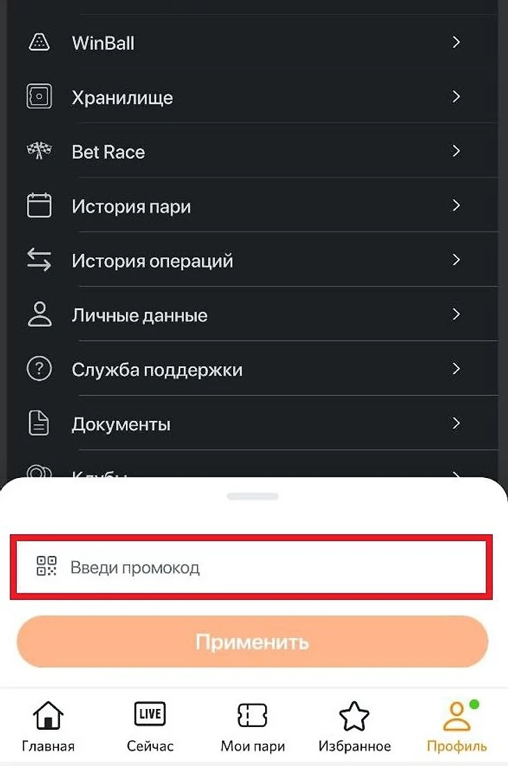 Промокод. Это специальная комбинация букв и чисел, которую нужно активировать при регистрации или в личном кабинете: на сайте – в разделе Winline Priority, в приложении – нажав «Ввести промокод». Промокод позволяет получить фрибет, эксклюзивный подарок или улучшить условия текущей акции.