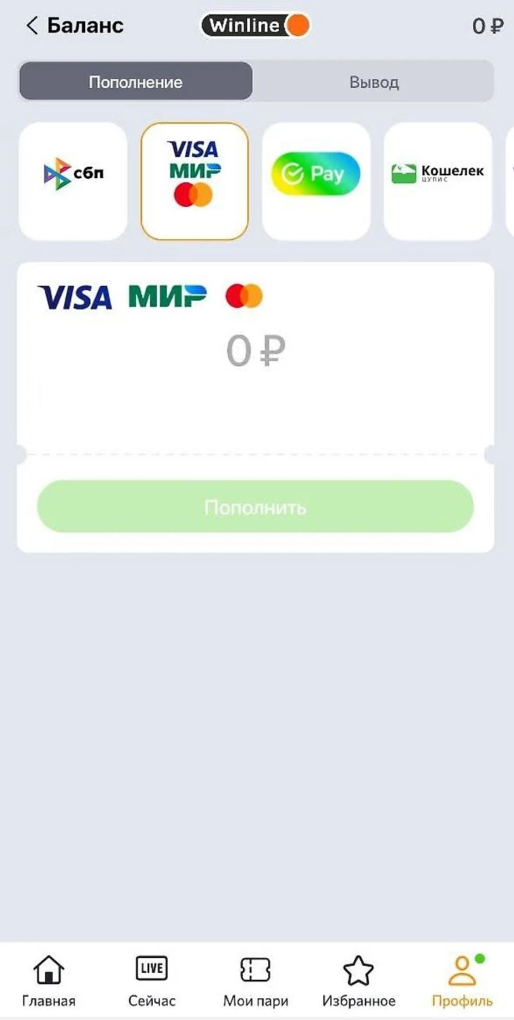 Комиссия со стороны БК отсутствует, но по налоговому законодательству РФ игрок обязан заплатить налог на выигрыш 13%. При выводе суммы более 15 000 рублей. Winline автоматически удерживает налог, избавляя игрока от необходимости уплачивать его самостоятельно.