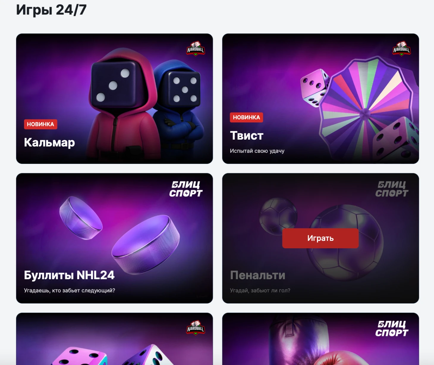 Нокаут. Напряженная игра, имитирующая боксерский поединок. Вы ставите на одного из двух «боксеров». Виртуальный бой состоит из нескольких раундов, и ваш боец должен «нокаутировать» соперника, чтобы ваша ставка сыграла.
