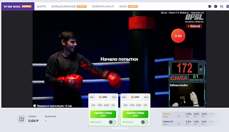Креш-бокс аналог краш игр из казино. Отличие в том, что в «Винлайн» за движение графика отвечает не алгоритм, а боксер, который бьет по груше. Чем сильнее удар, тем выше поднимается линия графика и соответственно множитель.
