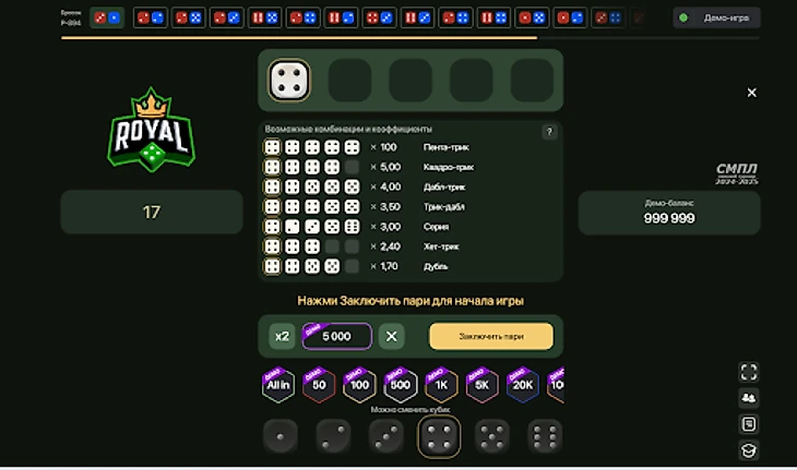 трик-дабл — два кубика из пяти соответствуют выбранному вами;