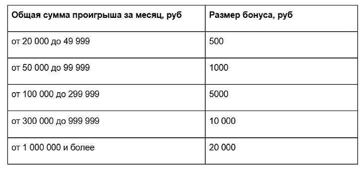 Для получения подарка нужно проиграть за последний месяц минимум 20 000 рублей