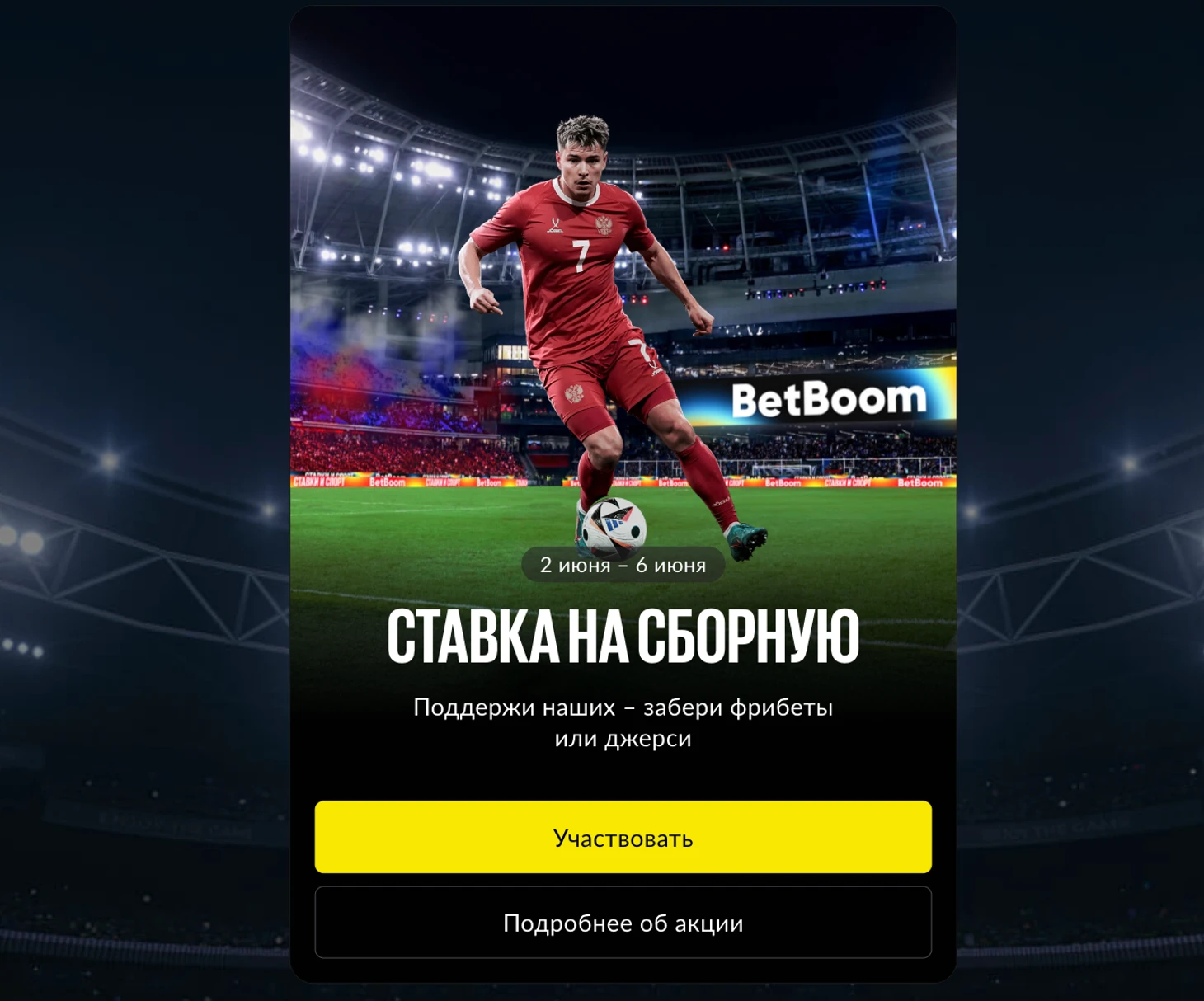 «Ставка на сборную» – это реальный шанс получить приятный бонус от BetBoom. Поддержка сборной может быть не только эмоциональной, но и выгодной – стоит попробовать.