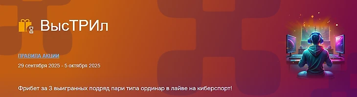 В период с 29 сентября по 5 октября 2025 года БК «Балтбет» предлагает своми игрокам получить дополнительный фрибет за выполнение определенных заданий. Необходимо заключить и выиграть подряд три пари типа ординар в режиме лайв на киберспорт. Акция идеально подходит для тех, кто следит за виртуальными спортивными баталиями и уверен в своих прогнозах.