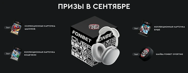 Новый хоккейный сезон начался, а вместе с ним вернулась и акция Fonbet Overtime! В сентябре 2025 у игроков есть возможность выиграть супербокс с классными наушниками, карточки Героев из лимитированной коллекции от БК «Фонбет» и сувенирную шайбу.