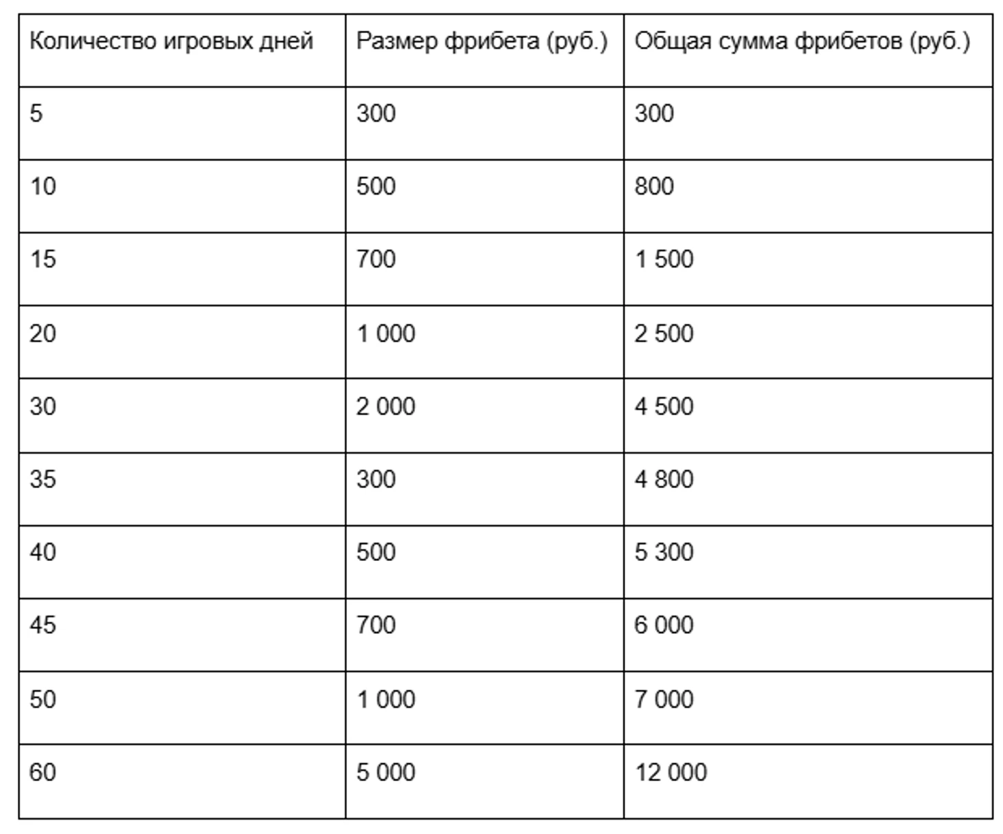 Фрибеты начисляются в зависимости от количества игровых дней, в течение которых игрок подряд делал ставки. Сумма бонуса суммируется по мере участия в акции. Начисление бонусов происходит в автоматическом режиме.