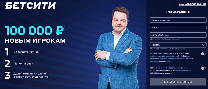 В БЕТСИТИ за первый депозит можно получить до 100 000 рублей.