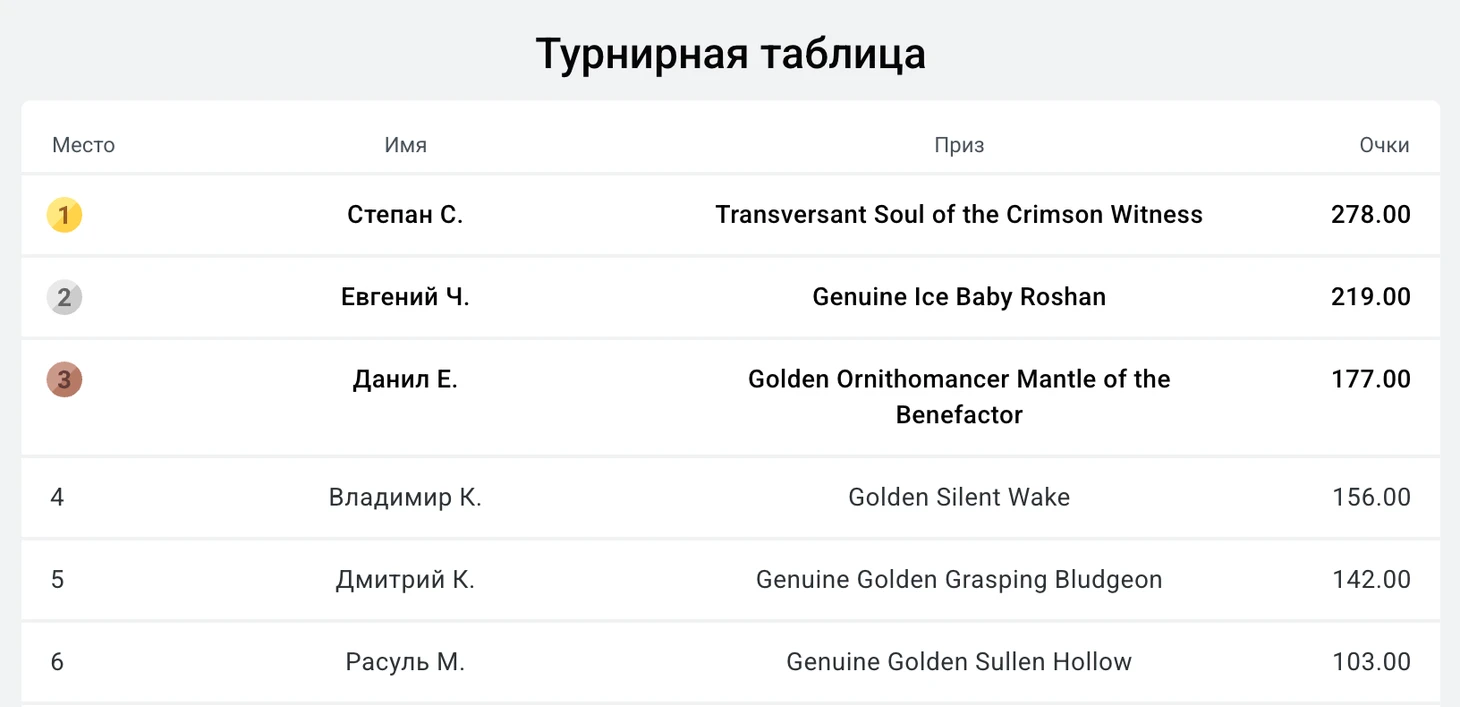 Как набираются очки и распределяются призы
