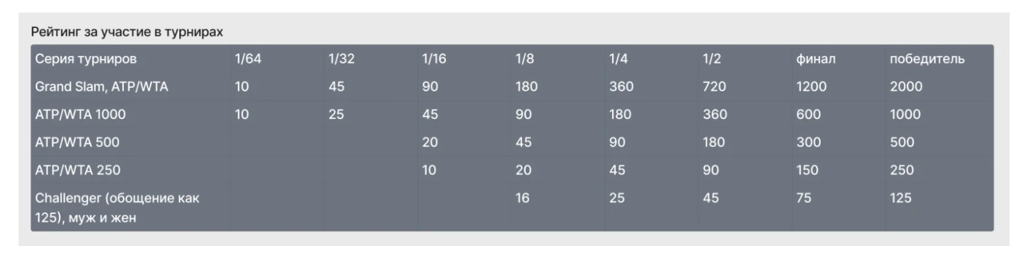 Значение рейтинга за стадию строго определено и зависит от турнира, а также от стадии, до которой дошёл пользователь:
