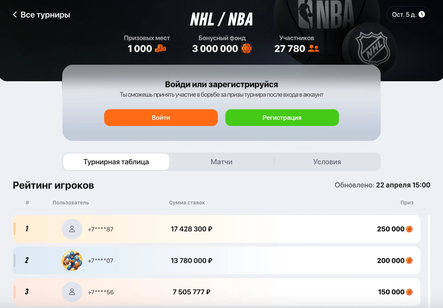 Призовой фонд турнира составляет 3 000 000 рублей, и распределяется он между 1 000 участниками в зависимости от объема ставок.