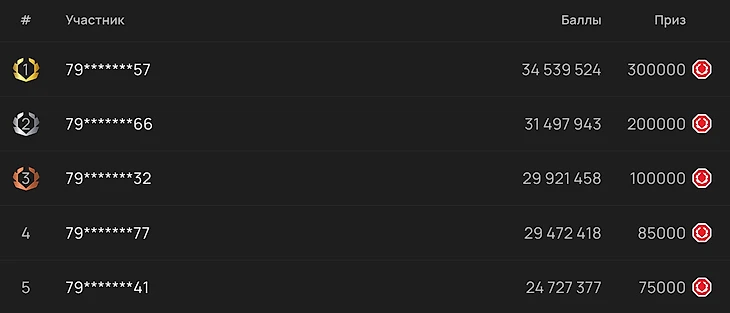 Запрещено искусственное накручивание баллов через перекрытие всех исходов одного события – такие действия приведут к исключению из акции. Участие допускается только с одного аккаунта.