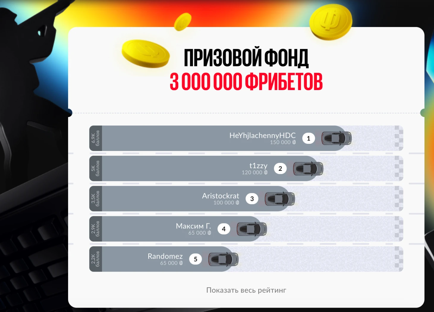Акция «Кибергонка» от БК BetBoom предлагает участникам возможность выиграть фрибеты без ограничений по суммам ставок. Каждый участник получает баллы за ставки, что позволяет подниматься вверх по турнирной таблице и бороться за ценные фрибеты!