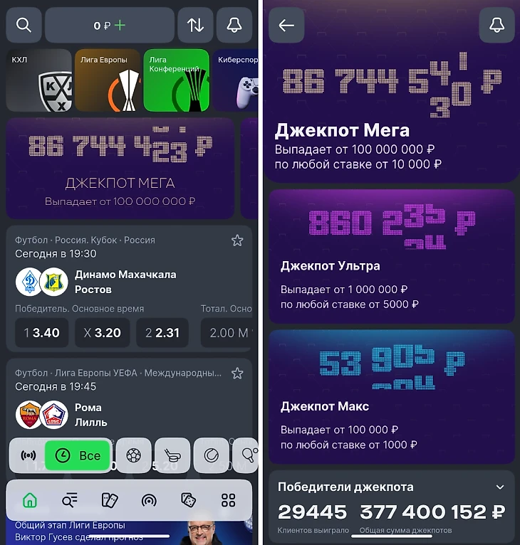 Полученный фрибет должен быть использован в течение 7 суток с момента начисления и только одной ставкой. Новый Джекпот, в свою очередь, начинает копиться заново сразу после розыгрыша предыдущего в ожидании следующего победителя.