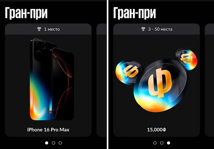 Гран-при: 48 фрибетов номиналом 10 416 рублей.