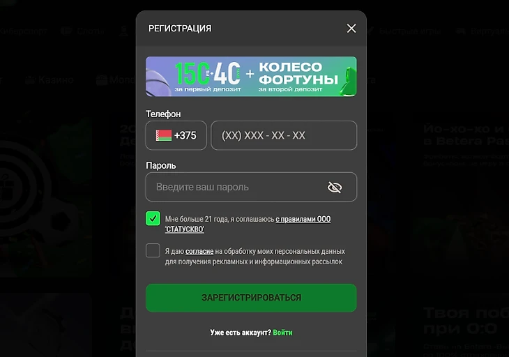 Предложение доступно исключительно для впервые зарегистрированных пользователей BETERA в Республике Беларусь. Чтобы получить все бонусы, необходимо выполнить следующую последовательность действий: