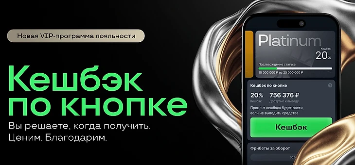 Platinum – сумма ставок от 25 млн рублей (максимальный кэшбэк 20% и эксклюзивные условия).