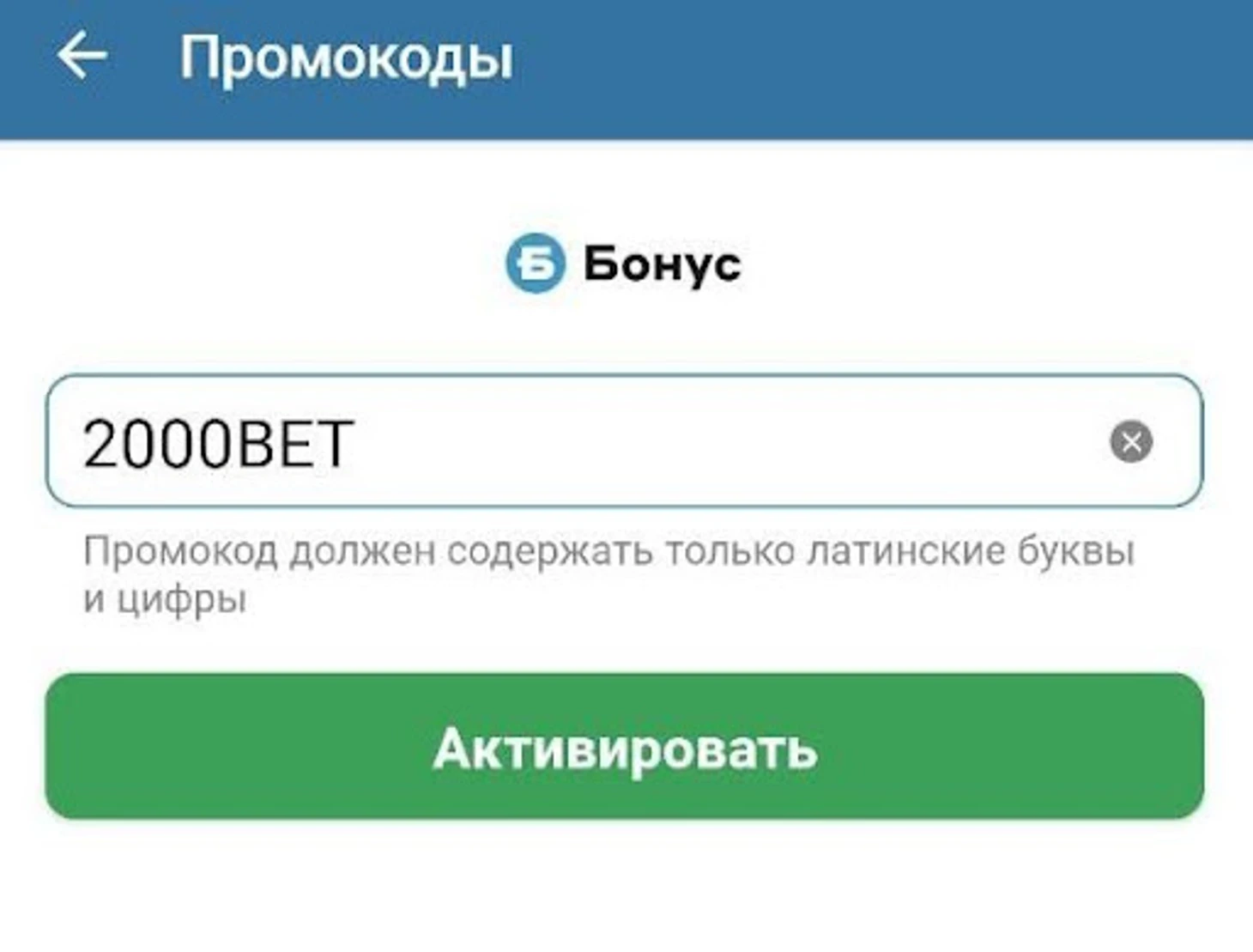 Игрок должен зарегистрироваться с промокодом в приложении или на сайте БК, подтвердить личность в процессе онлайн-идентификации, пополнить баланс на любую сумму и заключить пари с коэффициентом не ниже 1.70.