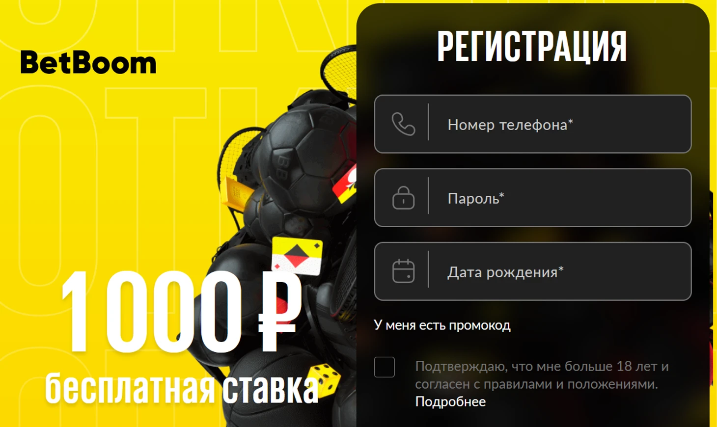 Зарегистрироваться в BetBoom. Создайте аккаунт на сайте или в мобильном приложении букмекера, используя специальную ссылку или промокод.