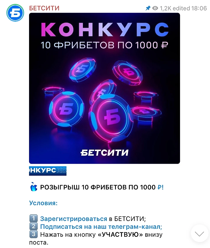 Для участия в акциях необходимо быть зарегистрированным клиентом БЕТСИТИ. После создания аккаунта достаточно подписаться на официальные сообщества букмекера в ВКонтакте или Телеграме.