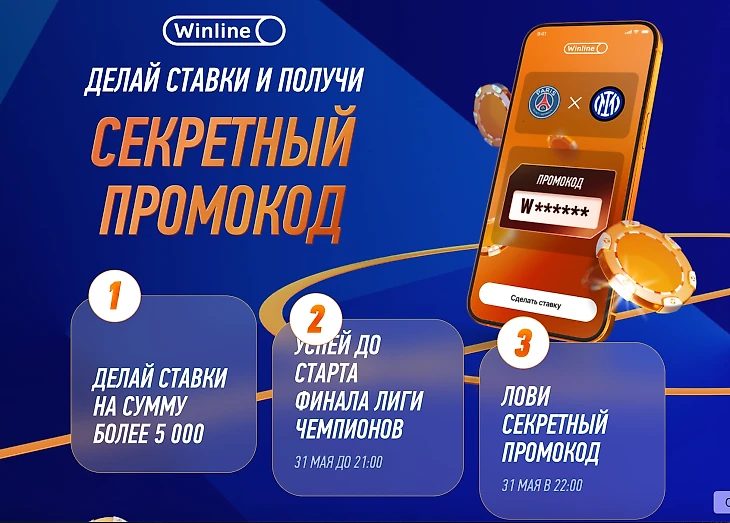 Секретный промокод будет отправлен участникам 31 мая в 22:00 на электронную почту или в личный кабинет Winline. Сам бонус станет известен только после активации полученного промокода по итогам акции. Например, промокод может открыть доступ к фрибету на определенную сумму, кэшбэку или повышенному коэффициенту для ставок. на финал Лиги чемпионов.